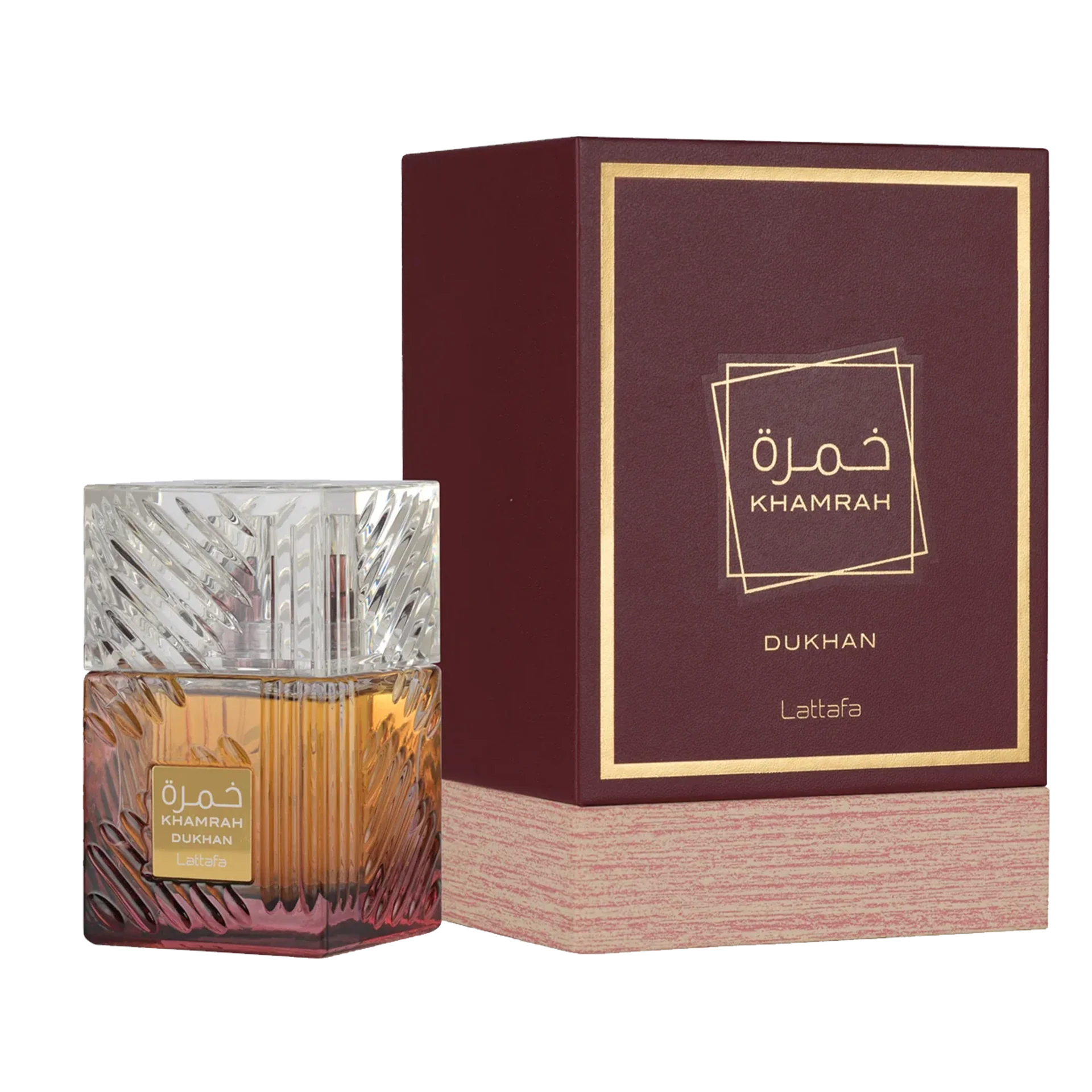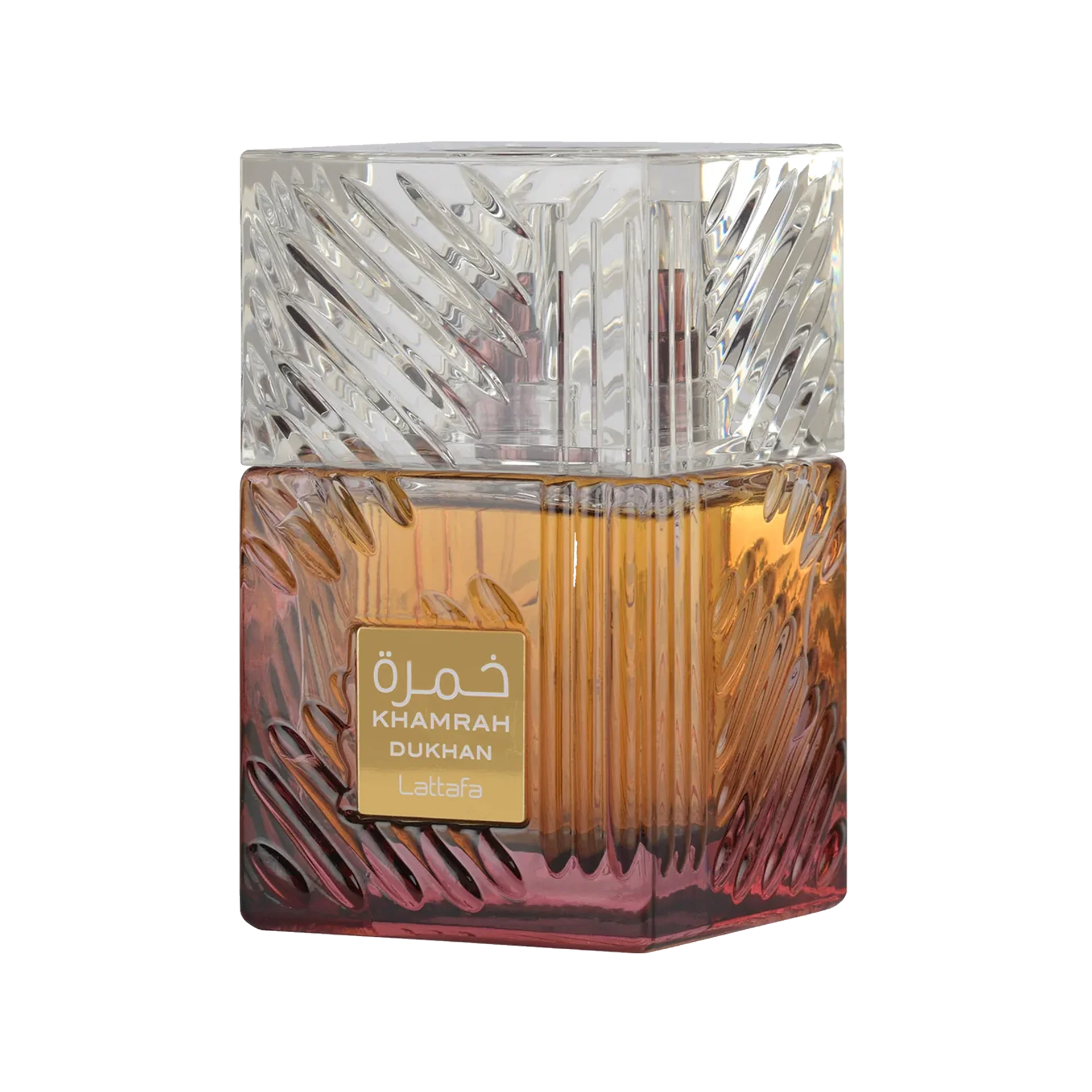 Lattafa Khamrah Dukhan ignites the senses from the first notes with a fiery fusion of Mandarin, Pimento and Smoked Spices that’s instantly striking, instantly memorable. The heart deepens with a rich blend of Cistus, Orange Flower, Incense and earthy Patchouli, evoking the sacredness of ancient rituals. Finally, a base of Tobacco, Amber, Tonka Bean, Benzoin and a touch of Praline grounds the scent in smoky warmth and magnetic sophistication.